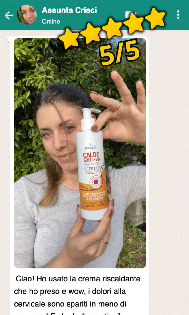 Caldo Sollievo è un gel crema formulato per alleviare rapidamente e a lungo termine il dolore muscolare, articolare e al collo. La sua formula, arricchita con estratto di Capsicum Annuum, offre un effetto riscaldante che rilassa i muscoli e allevia la tensione.